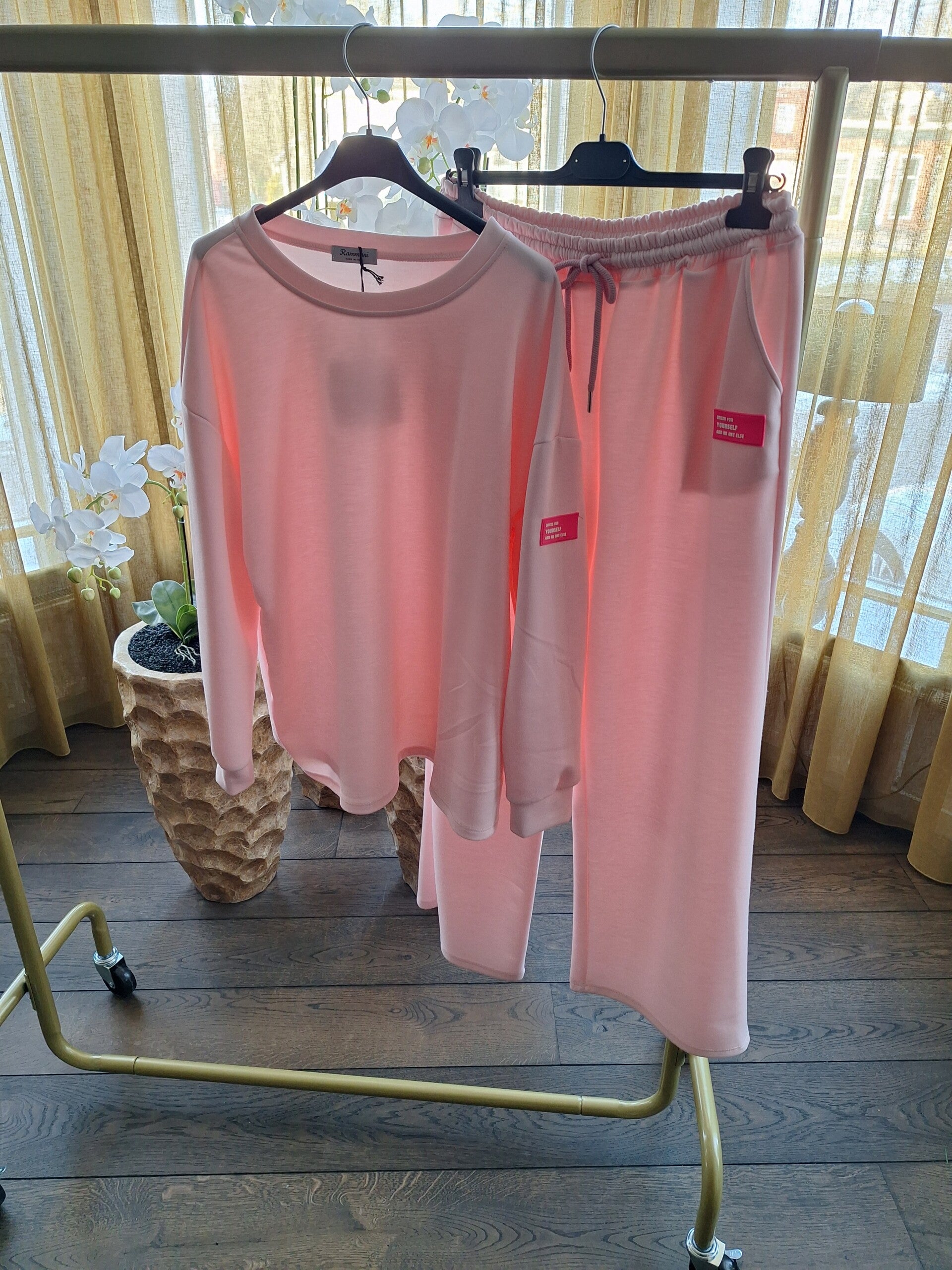 Label pakken met wide leg roze badge 5 kleuren verkrijgbaar