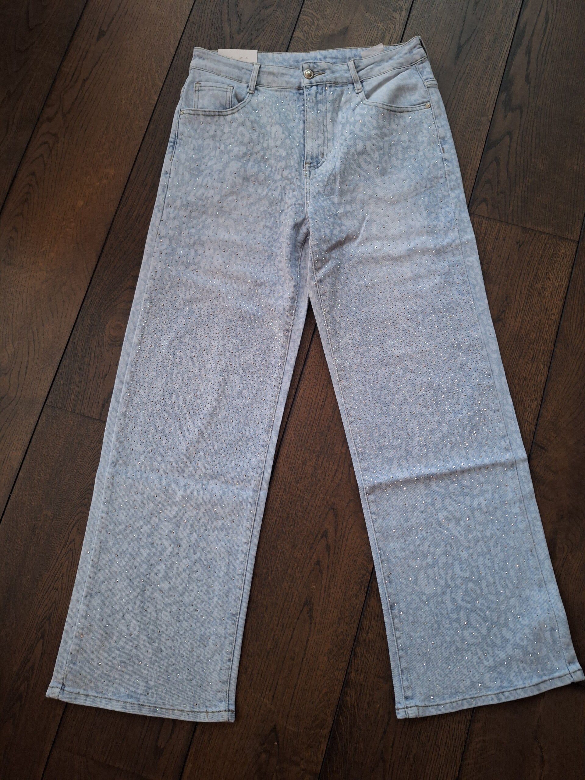 Jeans wide leg panter met strass